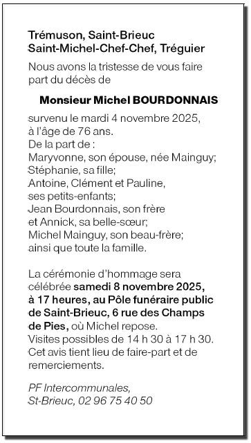 Décédé à Saint-Brieuc (22000, France) le mardi 4 novembre 2025 à l'âge de 76 ans